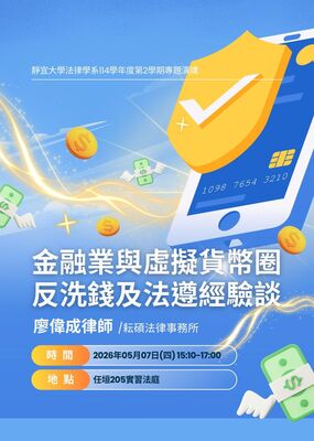 【法律學系專題演講】金融業與虛擬貨幣圈反洗錢及法遵經驗談