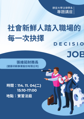 【法律學系專題演講】社會新鮮人踏入職場的每一次抉擇
