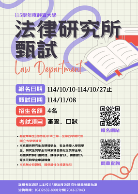 115學年度靜宜大學法律研究所甄試~歡迎報名~